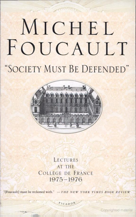 Macmillan: Google Book Preview for “Society Must Be Defended”: Lectures at the Collège de France, 1975-1976: (Lectures at the Collège de France): Books: Michel Foucault