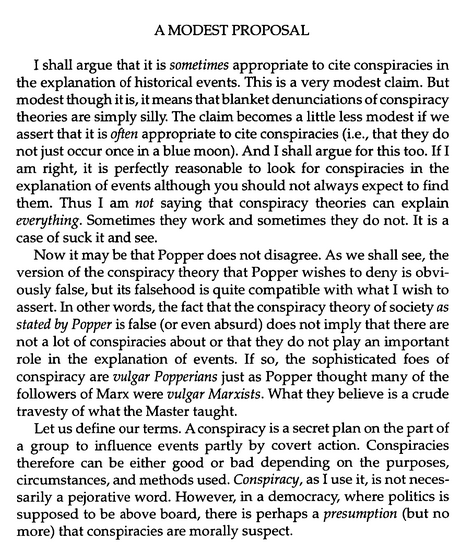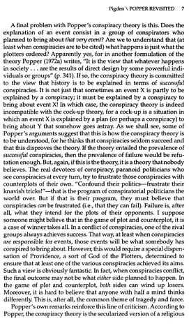 I’m posting three screen captures from Charles Pigden’s Popper Revisited or What is Wrong with Conspiracy Theories? from 1995: