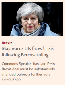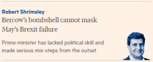 Headline: Bercow’s bombshell cannot mask May’s Brexit failure