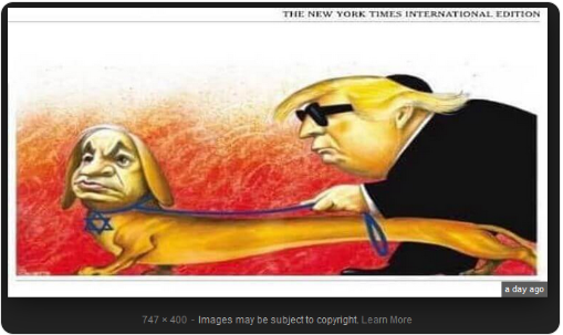 Here is an actual Antisemitic cartoon from Julius Streicher’s Der Stürmer. And note, if the cartoon you were shrieking about were Antisemitic, Netanyahu would have had Trump by a leash, and BiBi would not have looked like a cute puppy !