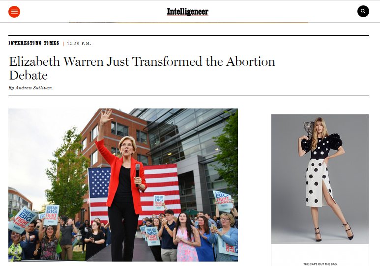 Headline: Elizabeth Warren Just Transformed the Abortion Debate