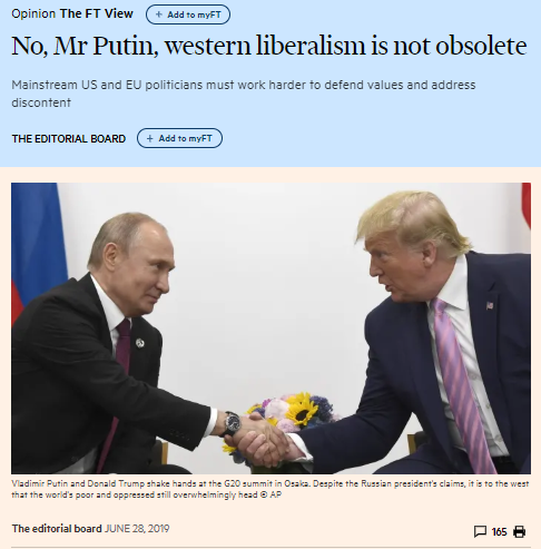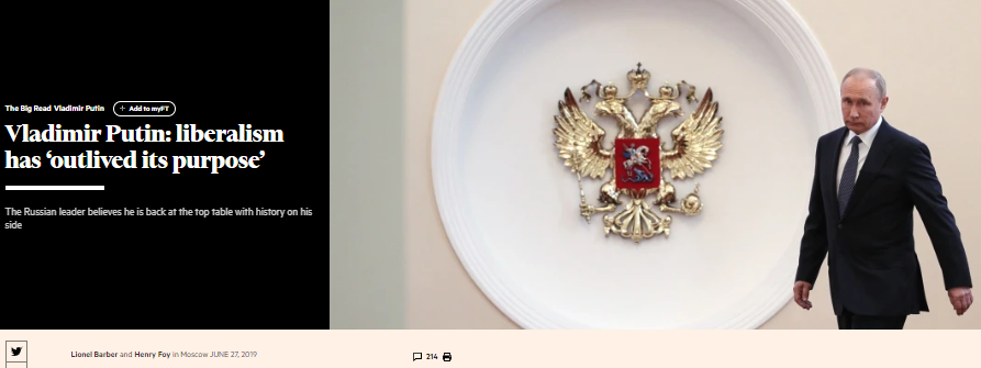 This interview with Putin began the Financial Times’ defensiveness about ‘Liberalism’: