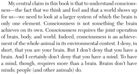 The synergy between Brain,Body and World, as presented by Noe isn’t freighted with Theological/Philosophical baggage, The second quoted paragraph of Prof. Wolfe’s essay is awash in that very particular baggage.