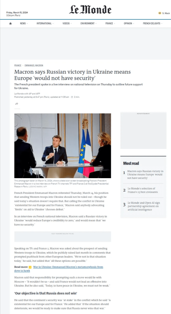 __https://www.lemonde.fr/en/france/article/2024/03/14/macron-says-russian-ukraine-victory-would-reduce-europe-s-credibility-to-zero_6619721_7.html________________________________________________________________
