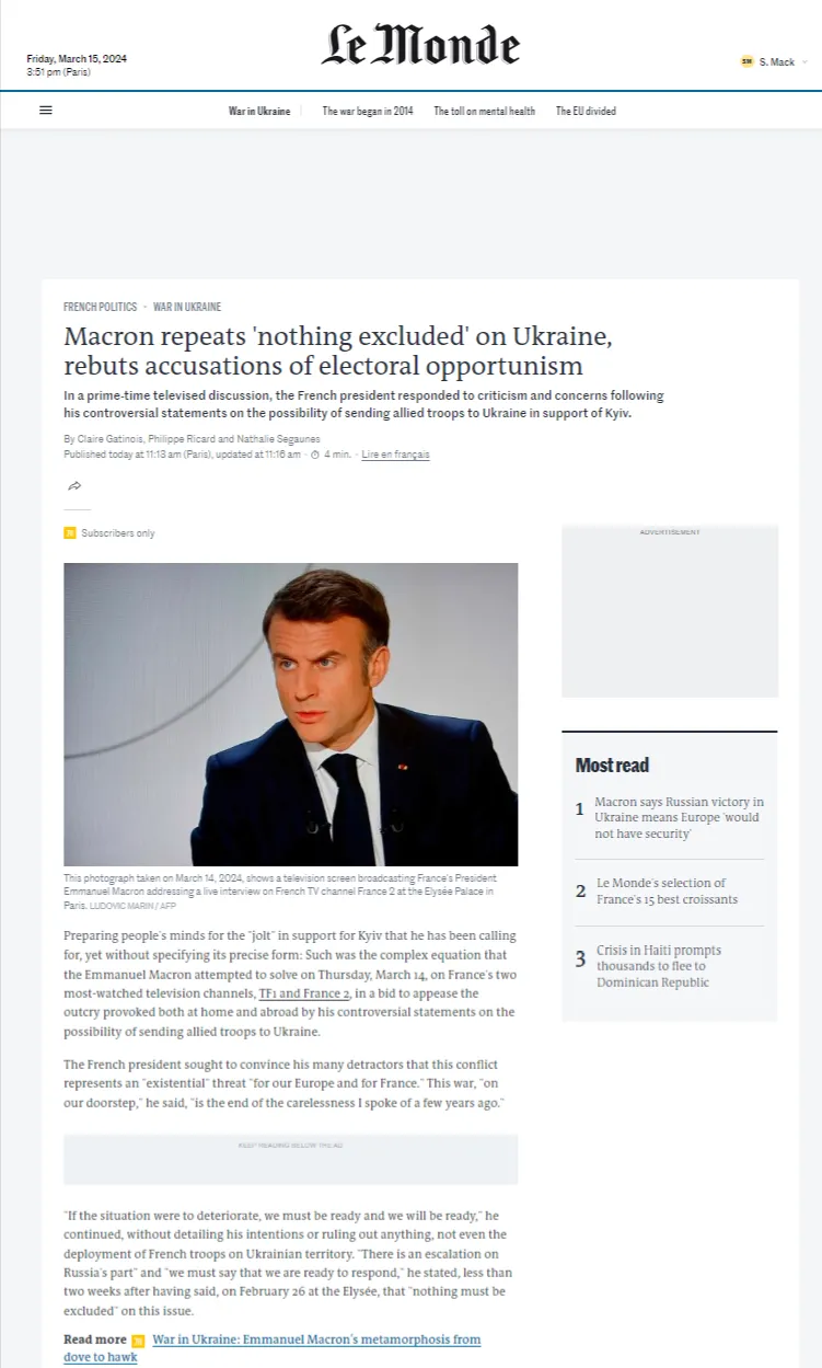 __https://www.lemonde.fr/en/politics/article/2024/03/15/macron-repeats-nothing-excluded-on-ukraine-rebuts-accusations-of-electoral-opportunism_6621643_5.html________________________________________________________________________________