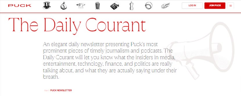 Though not a subscriber to PUCK I keep getting this in my email. Now Puck must be the latest copy, on the once ascendent Vanity Fair, under perennial ass kisser Graydon Carter, now at AirMail, call it a dusty antique!