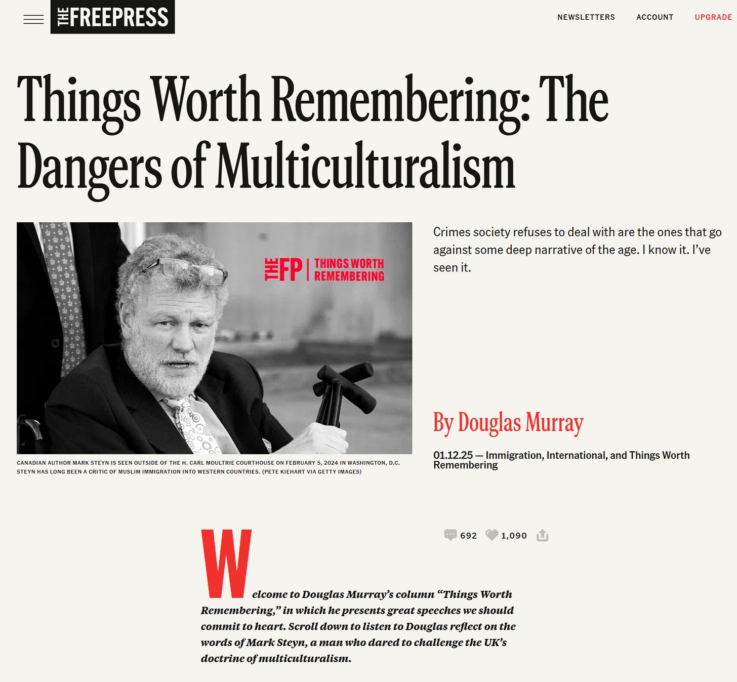 Editor: Murray’s latest idée fixe in the pages of The Free Press is ‘The Rampant Dangers of Multiculturalism’