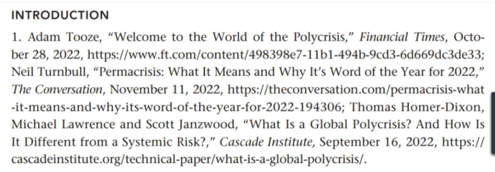Here is a note from Adam Tooze’’s Financial Times essay of Octorber 28, 2022. The first mention of ‘Polycrisis’