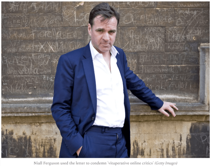 Ferguson also used the letter to condemn “vituperative online critics” for their knee-jerk response to his original comments – adding that for the “self-appointed inquisitors of internet, it is always easier to accuse than seriously to inquire”.