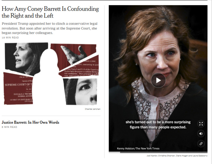 Now Mr. Trump is attacking the judiciary and testing the Constitution, and Justice Barrett, appointed to clinch a 50-year conservative legal revolution, is showing signs of leftward drift.