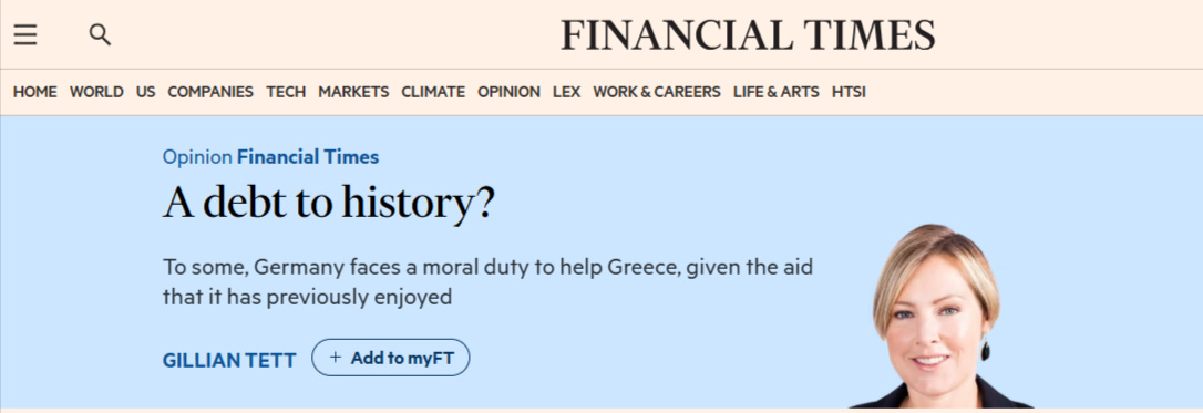 But the longer that Greece writhes under that debt burden, the more that passions get inflamed — on all sides. Even inside the sombre halls of central banks. Perhaps it is time for someone to distribute Graeber’s book more widely among Europe’s central bankers. Luckily, it is now available in both German — and Greek.