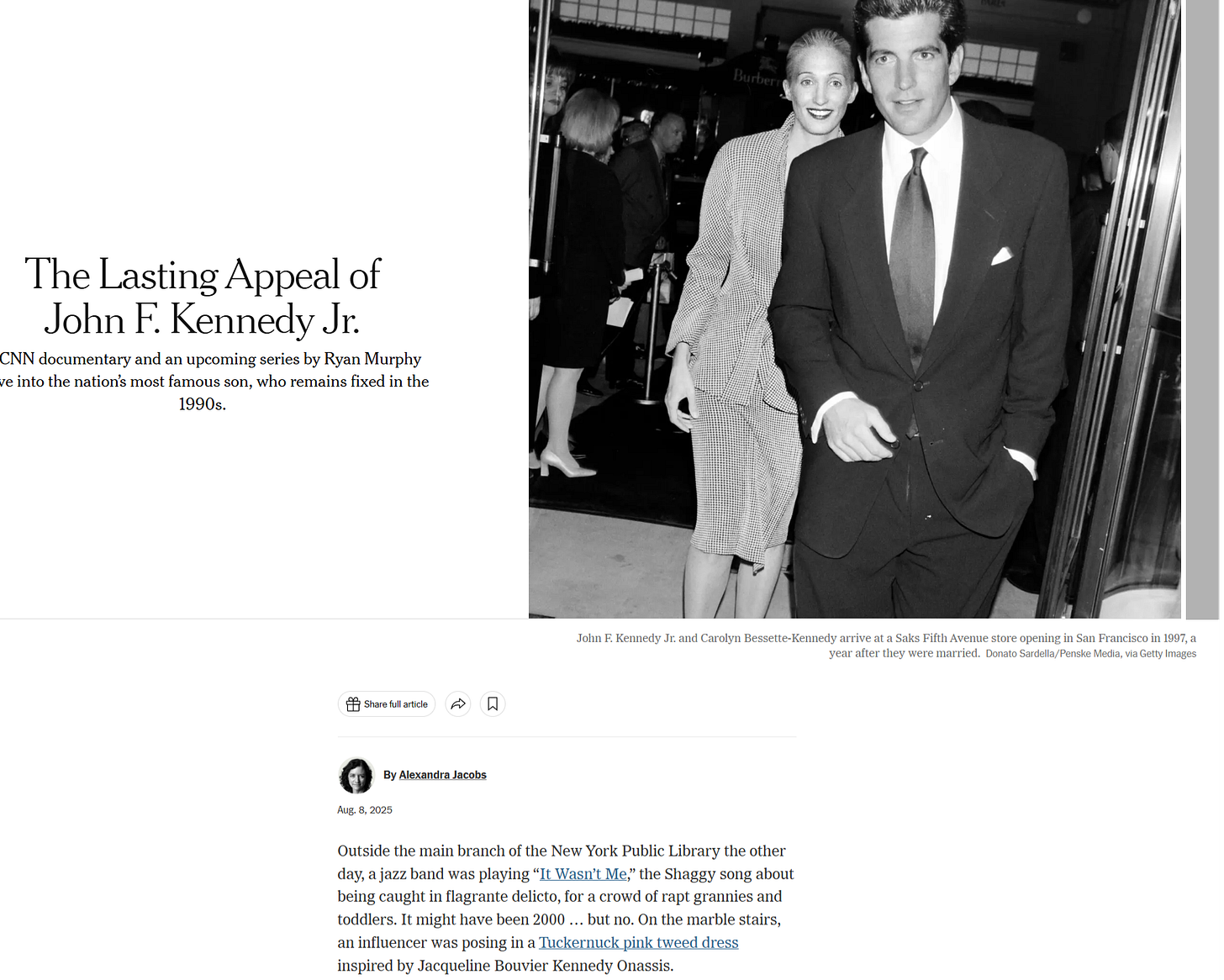 As the ghosts of John F. Kennedy Jr. Carolyn Bessette-Kennedy are replaced by Seth Rogan & Zionist Hysteric Jonathan Greenblatt: @NYT of August 9, 2025!