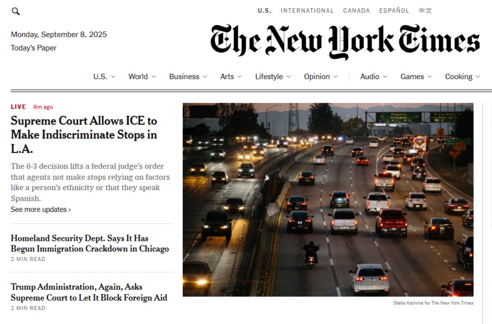 In the near term it allows what critics say are roving patrols of masked agents routinely violating the Fourth Amendment and what supporters say is a vigorous but lawful effort to enforce the nation’s immigration laws.