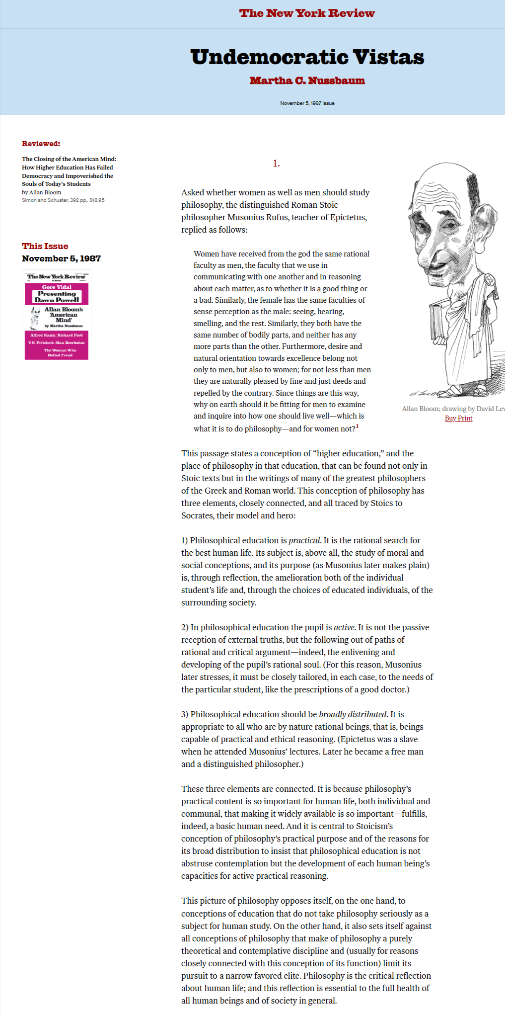 Martha C. Nussbaum takes Bloom apart November 5, 1987 !