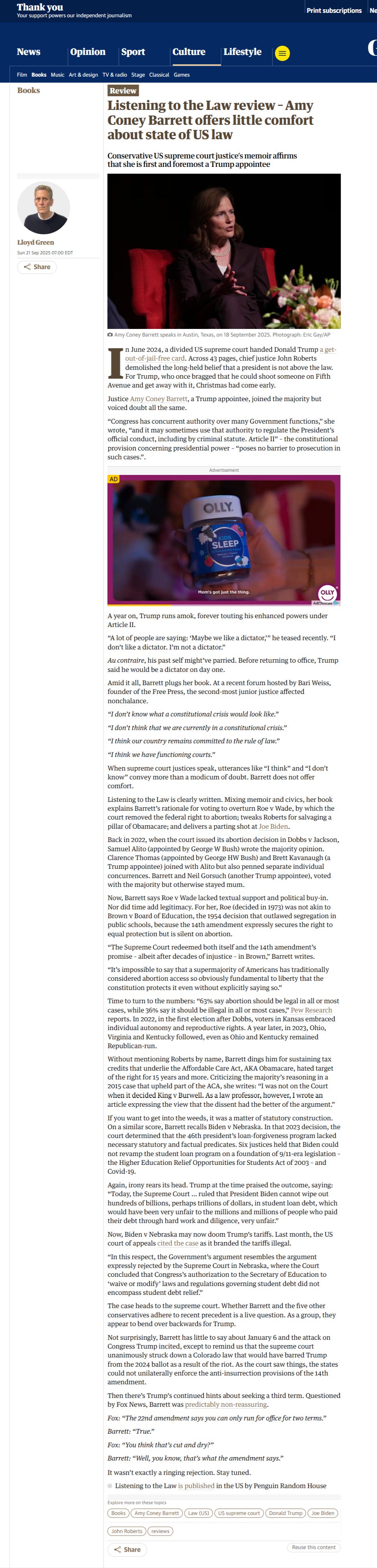 https://www.theguardian.com/books/2025/sep/21/listening-to-the-law-review-amy-coney-barrett