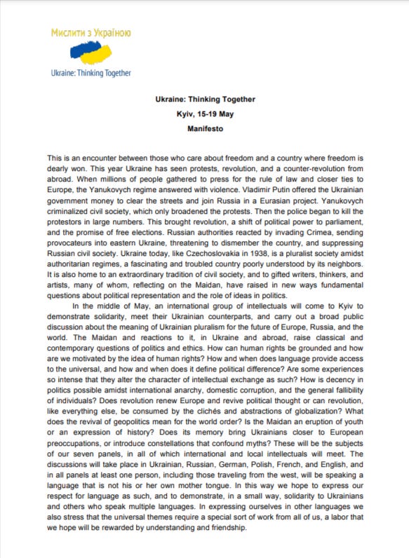 Ukraine: Thinking Together Kyiv, 15-19 May Manifesto
