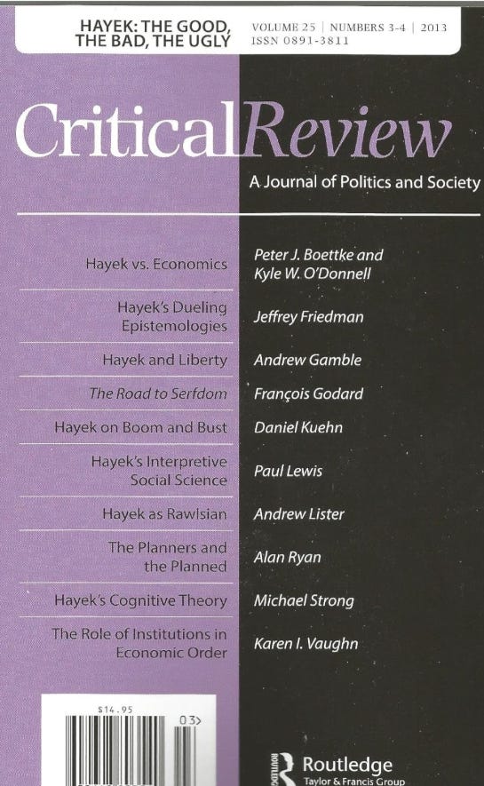 Critical Review: Hayek the Good, the Bad, the Ugly (Volume 25, Nos. 3-4, 2013) Paperback – January 1, 2013