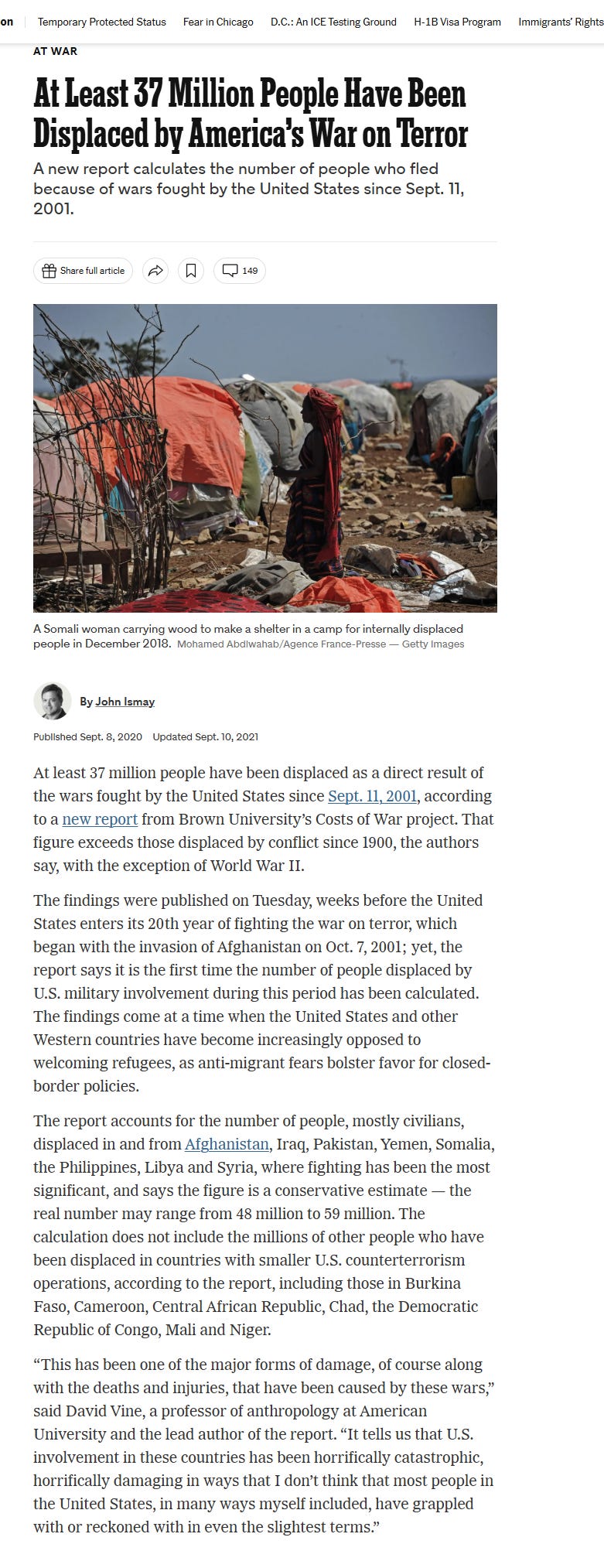 Editor: As a long time reader of The Economist, I offer the thought that the once ascendent team of Adrian Wooldridge and John Micklethwait, were more sophisticated advocates of The War On Terror in its various iterations and wan rationalization ! Yet the New York Times offers this sobering reality !