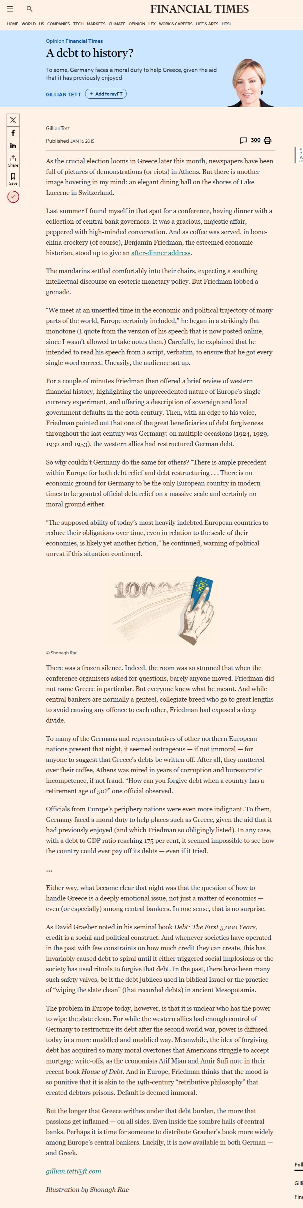 For an alternative view to this Economist editorial see Jillian Tett’s essay at the Financial Times on debt forgiveness and the Germans, from an address by Benjamin Friedman, aptly titled A Predictable Pathology.