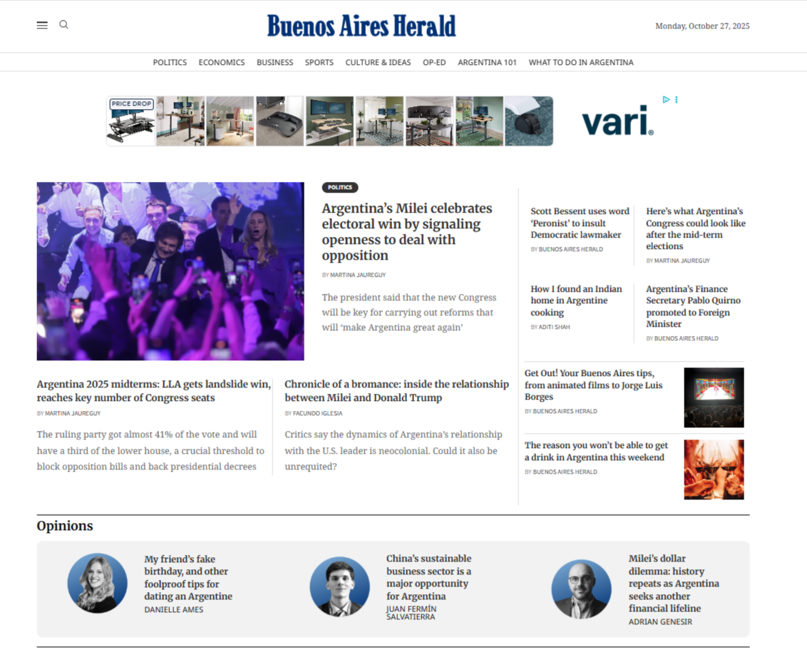 Editor: Look to the Buenosaires Herald as a more reliable source of information about Argentine political life?