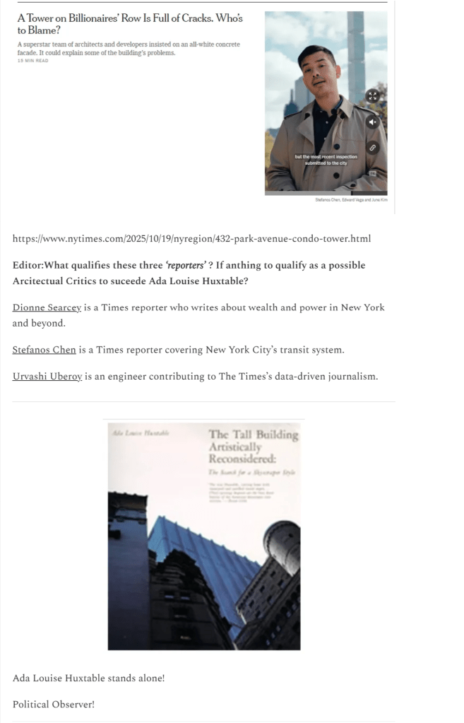 Where might be an Ada Louise Huxtable for the Political Present be found?