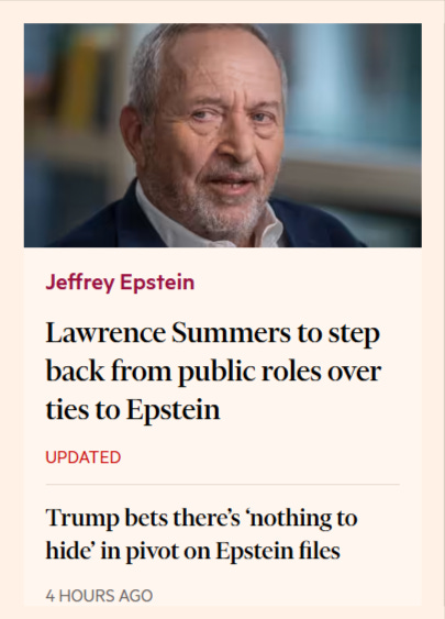 @FT: Lawrence Summers to step back from public roles over ties to Epstein.