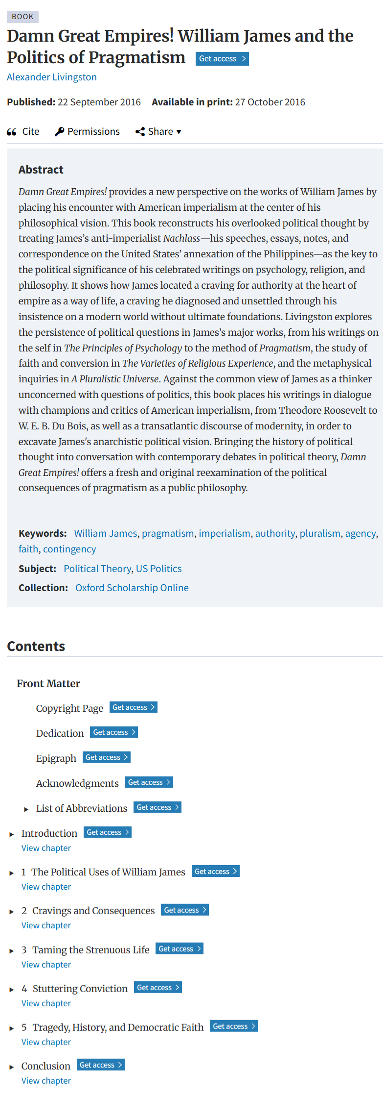 Editor: Even William James, via Alexander Livingston, offers this: ‘Damn Great Empires! William James and the Politics of Pragmatism’
