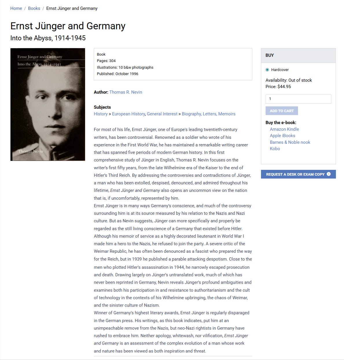 Editor: Mr. Stephens is the etiolated version of Ernst Jünger? Thomas R. Nevin book provides vauable insights into Ernst Jünger!