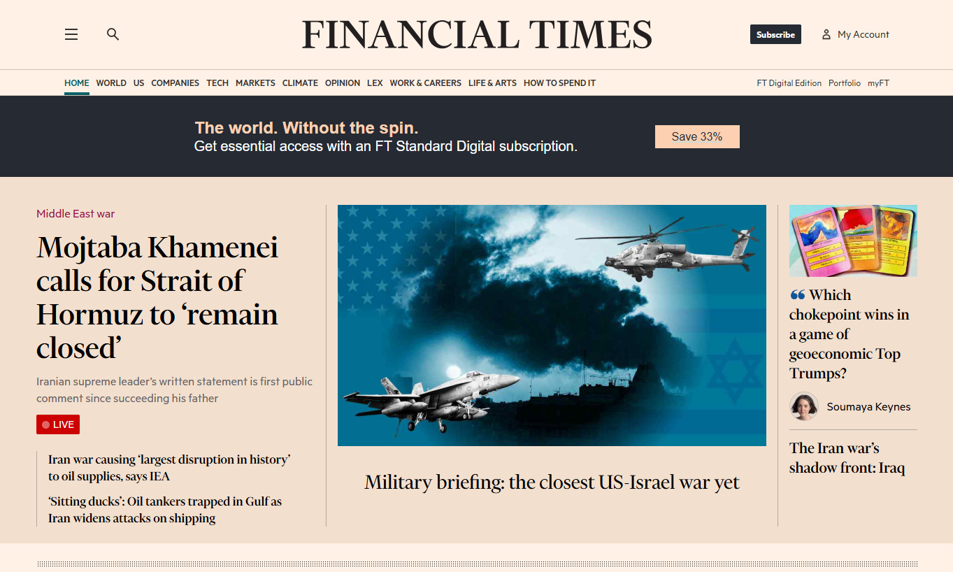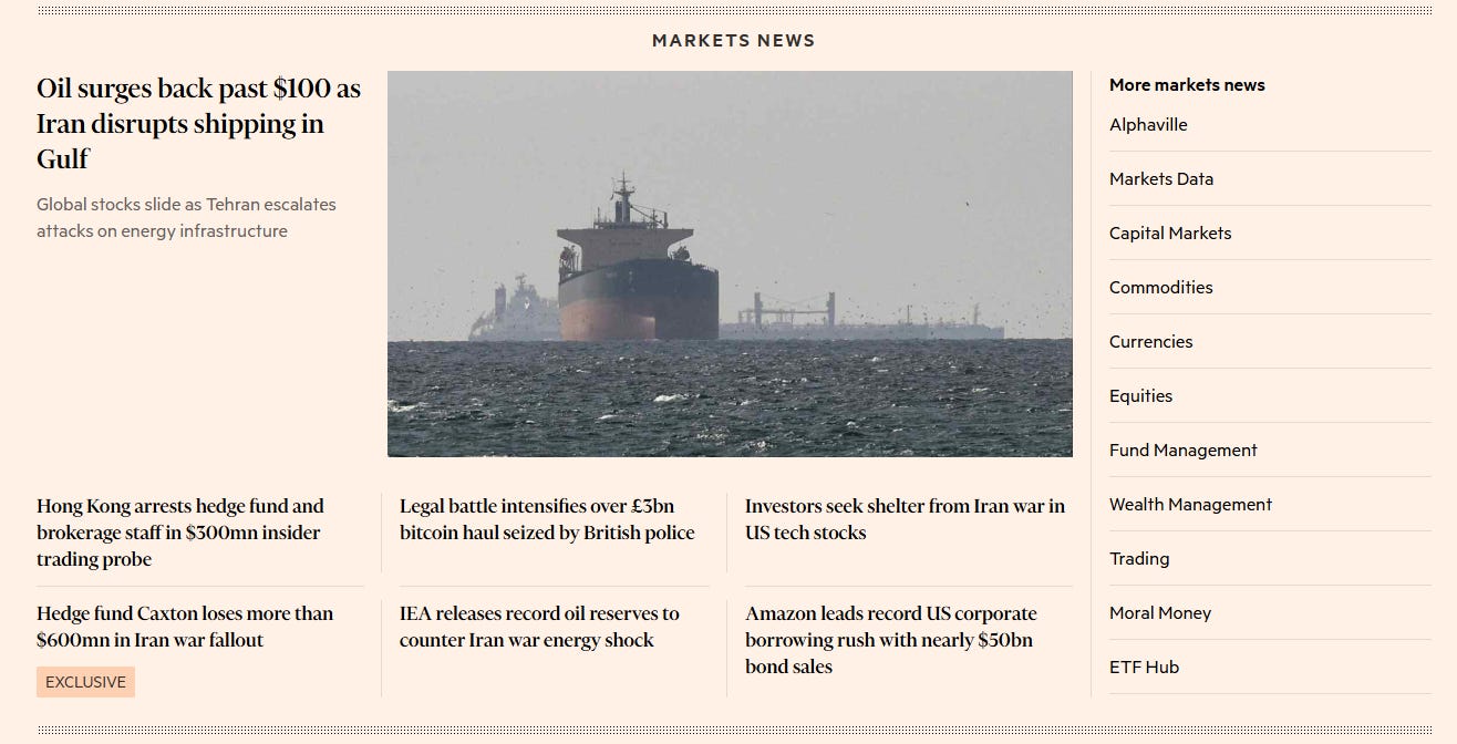 The Finacial Times of 3/12/2026 provides all the ‘information’ that its readers will devour, on that train ride to the Office? At lunch time: ‘The Economist’?
