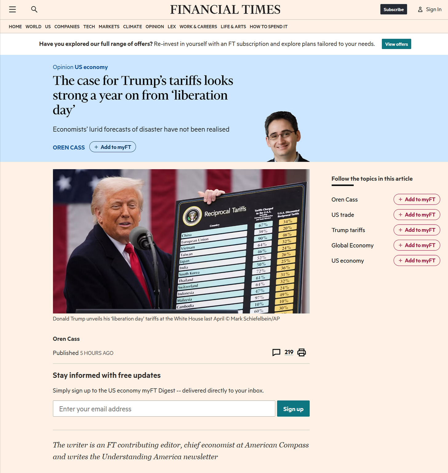 A year has passed since President Donald Trump appeared in the White House Rose Garden to announce sweeping tariffs on US imports. “Liberation day” marked a dramatic turning point for the international economic system and its seemingly inexorable march towards lower trade barriers and global integration. The results have been remarkable.