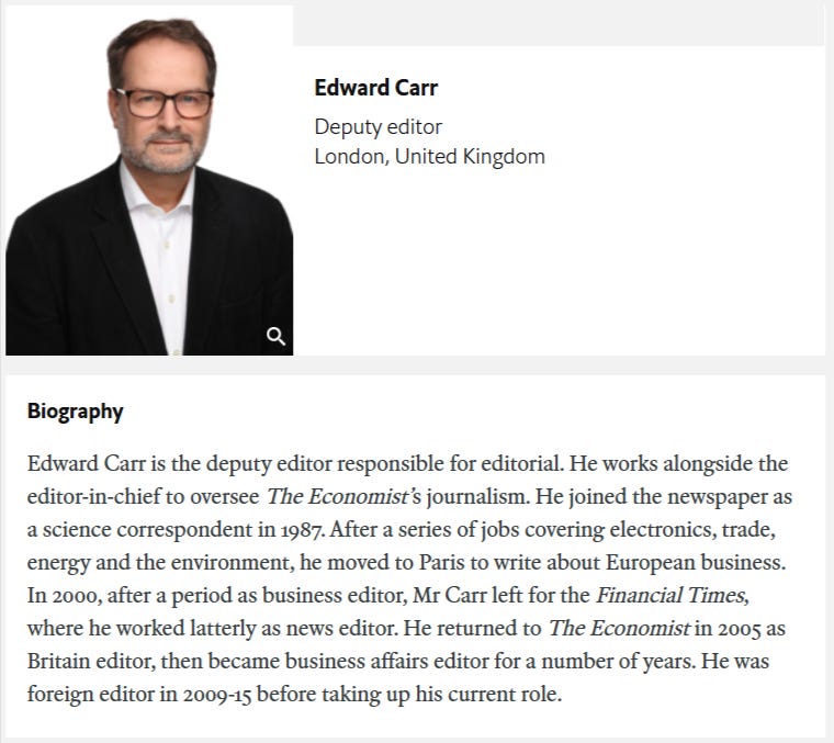 Editor: Mr. Carr is a Neo-Conservative like Zanny Menton Beddoes, his editor: